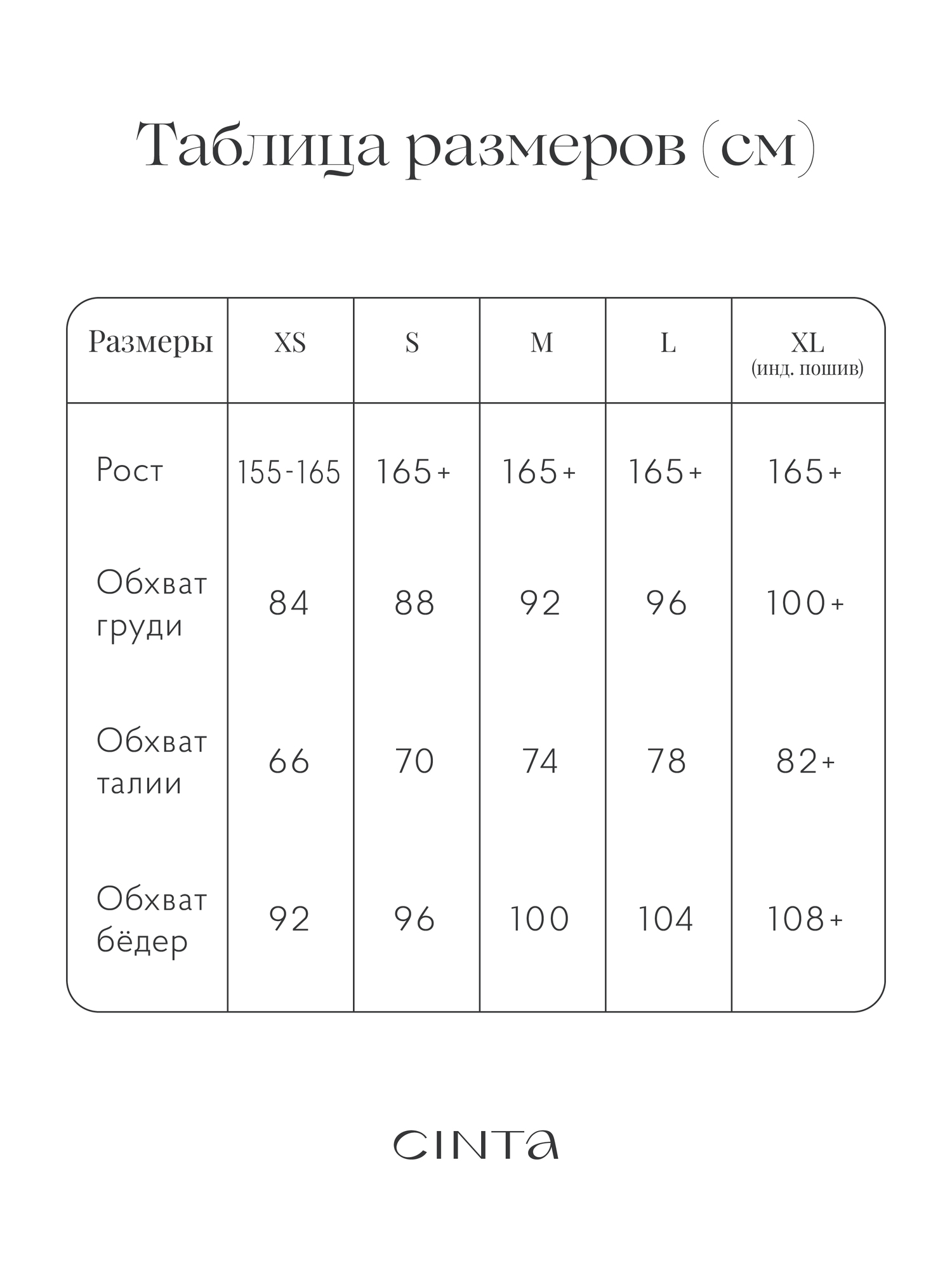 Минимальный силуэт, выверенный до сантиметра: правильная линия плеча, идеальная глубина выреза, Cinta трикотаж, который держит форму и не требует объяснений.